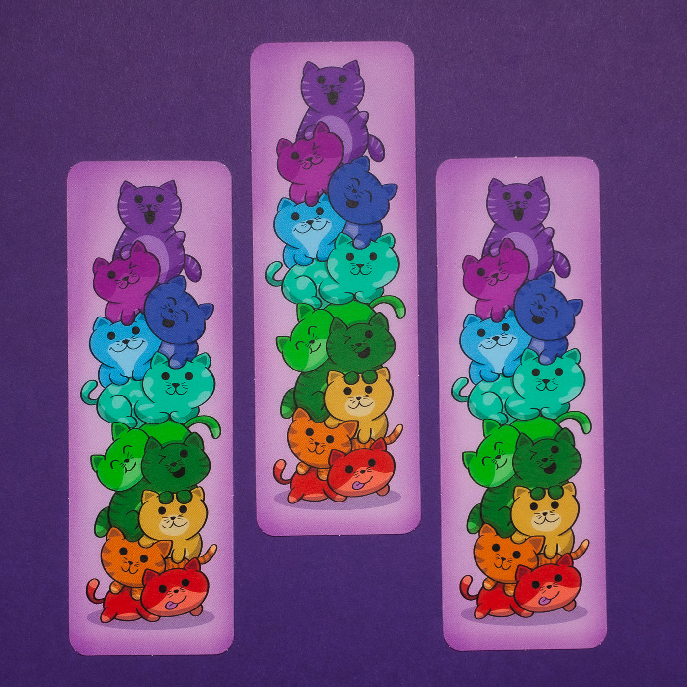 Cats and books, what more is there? Featuring a whimsical tower of colorful cats, it's the purrrrfect companion for any book lover.